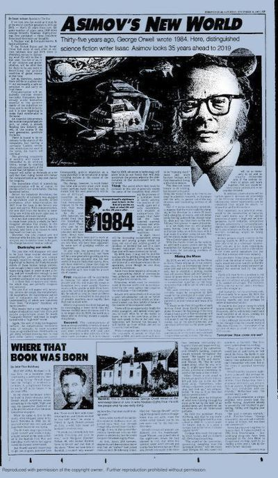 През 1949 г. Джордж Оруел  публикува своята визия за 1984 г., 35 години по-късно. Точно в навечерието на 84-та година от миналия век изданието Тhe Star се обръща към Айзък Азимов да направи прогноза, също като Оруел, за след още 35 години.