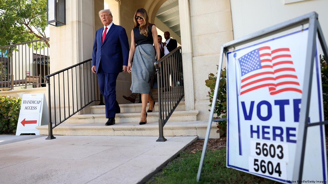 Доналд и Мелания Тръмп на излизане от избирателната секция, след като са гласували на междинните избори през ноември 2022 г.Снимка: Joe Raedle/Getty Images