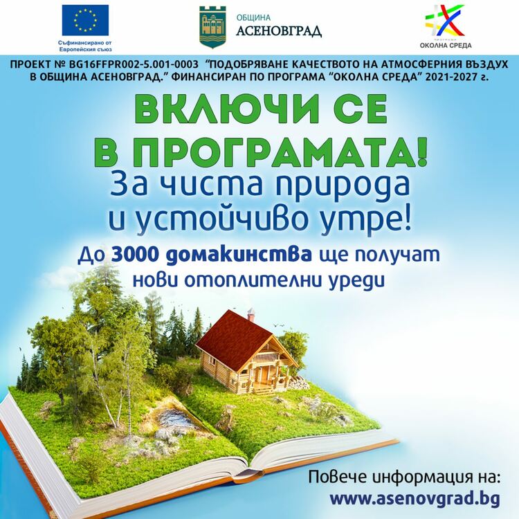 8-ми август 2024 г., гр. Асеновград - Община Асеновград изпълнява проект № BG16FFPR002-5.001-0003 „Подобряване качеството на атмосферния въздух в община Асеновград, финансиран по Процедура „За по-чист въздух!“ по Програма „Околна среда“ 2021 - 2027 г.