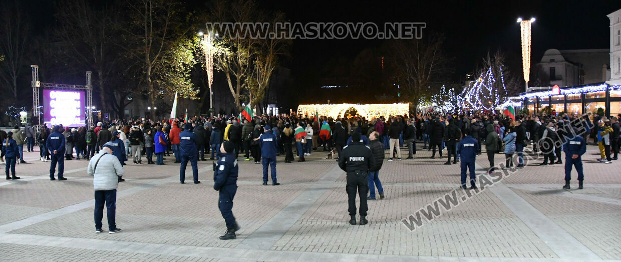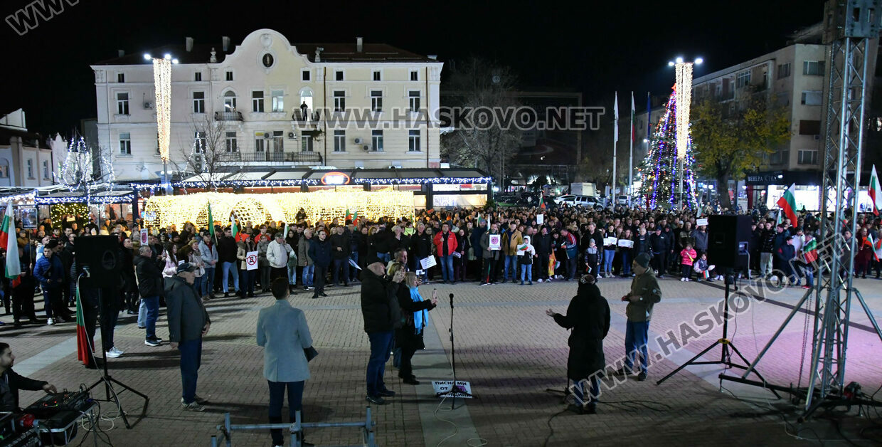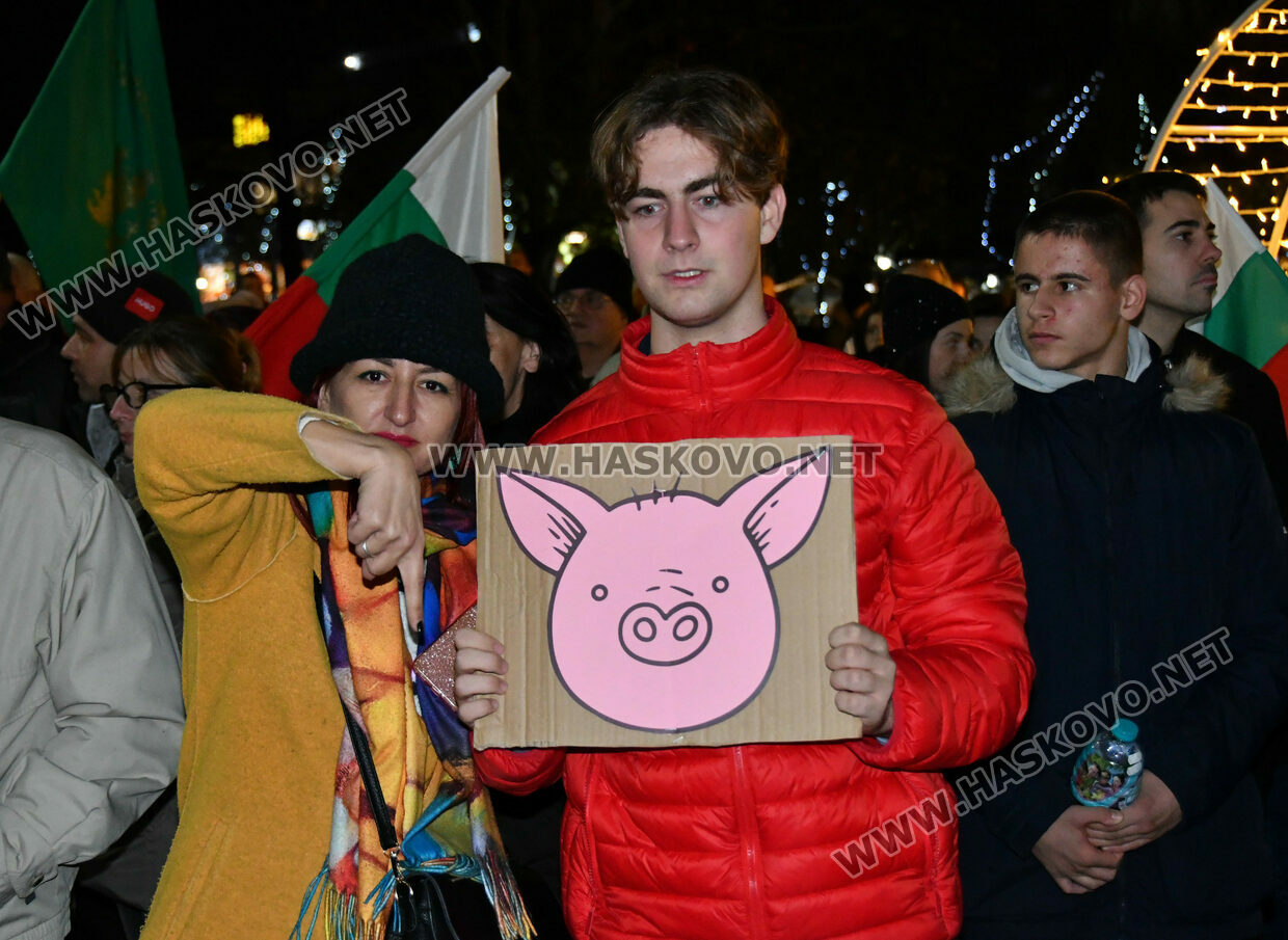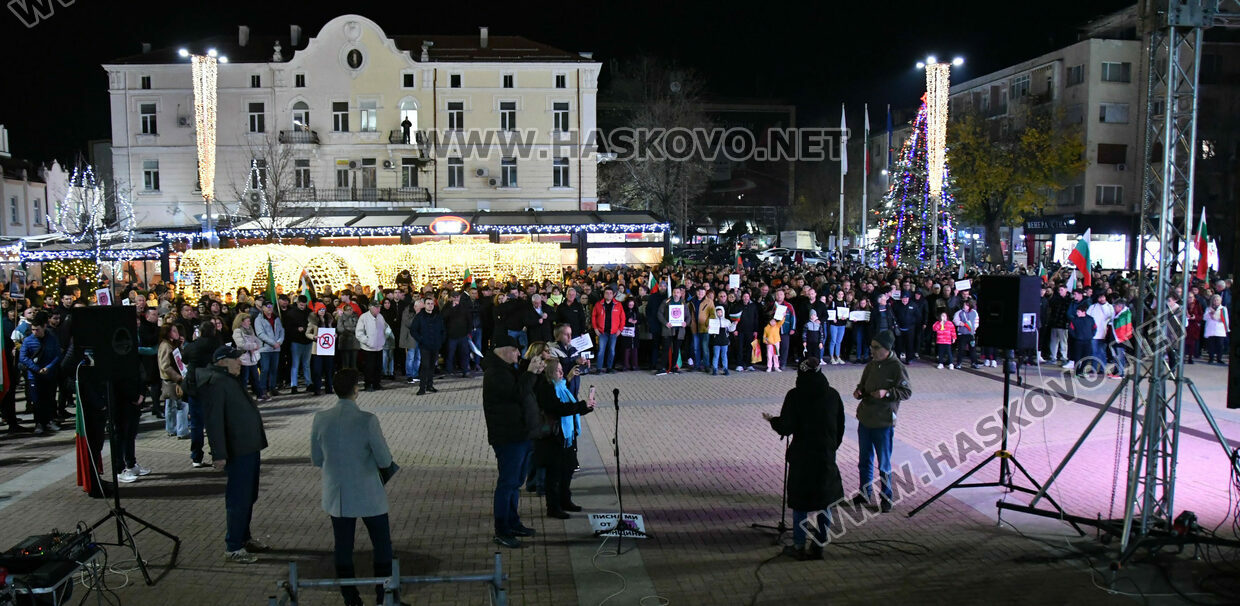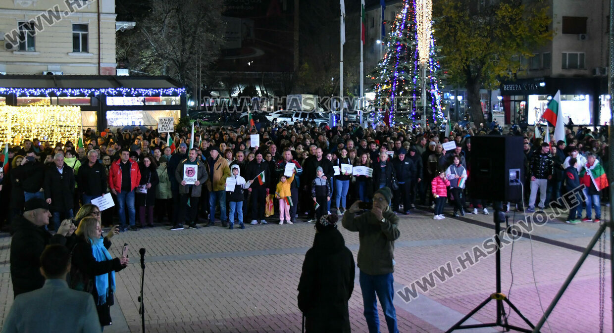 Над 500 души скандираха „Оставка“ и поискаха европейско бъдеще за България без Борисов и Пеевски на централния площад „Свобода“ в Хасково. За разлика от предишни протести този категорично не беше против еврото и ЕС, въпреки че представители на проруските партии също бяха на площада.