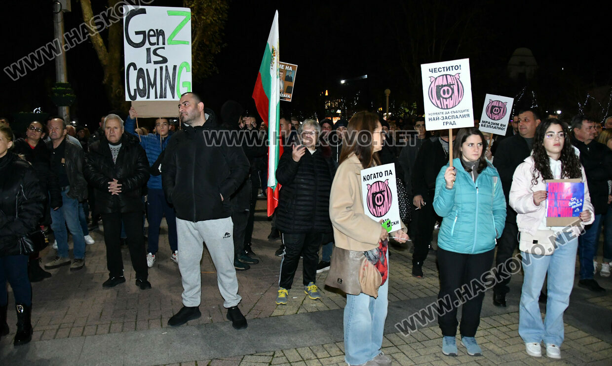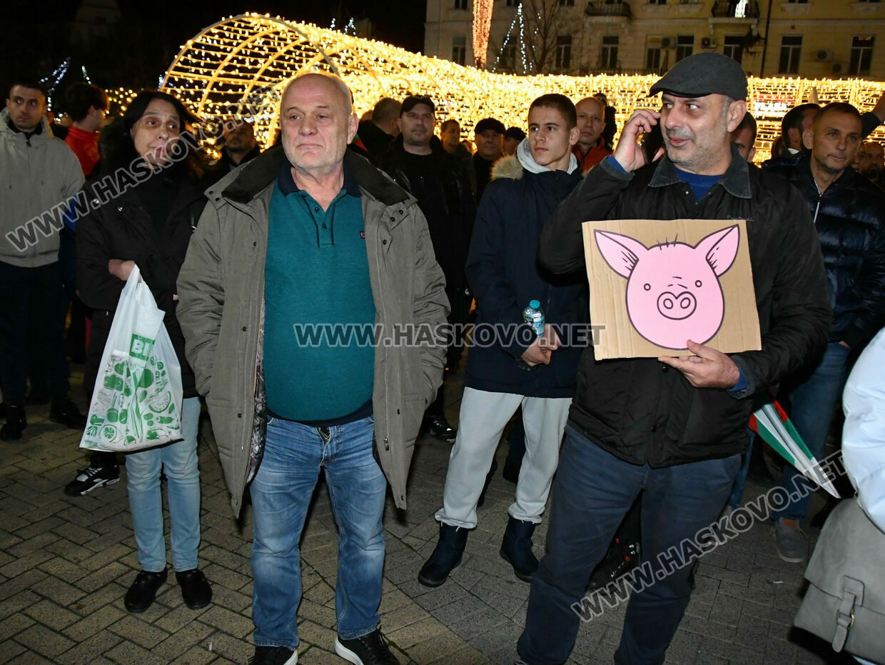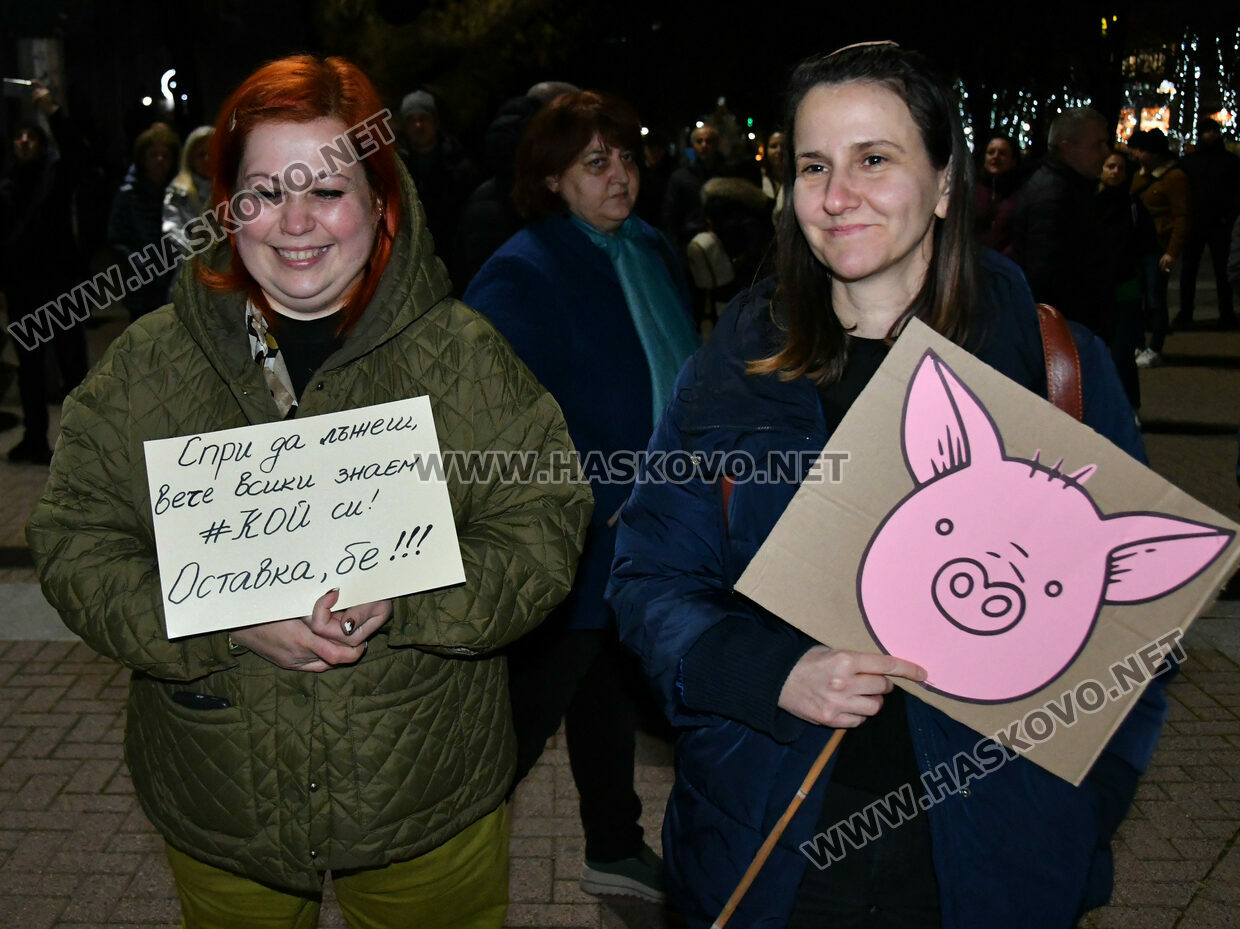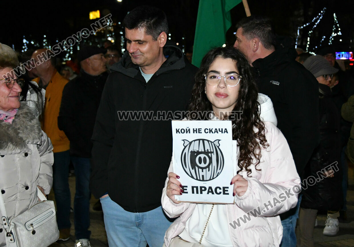 Над 500 души скандираха „Оставка“ и поискаха европейско бъдеще за България без Борисов и Пеевски на централния площад „Свобода“ в Хасково. За разлика от предишни протести този категорично не беше против еврото и ЕС, въпреки че представители на проруските партии също бяха на площада.