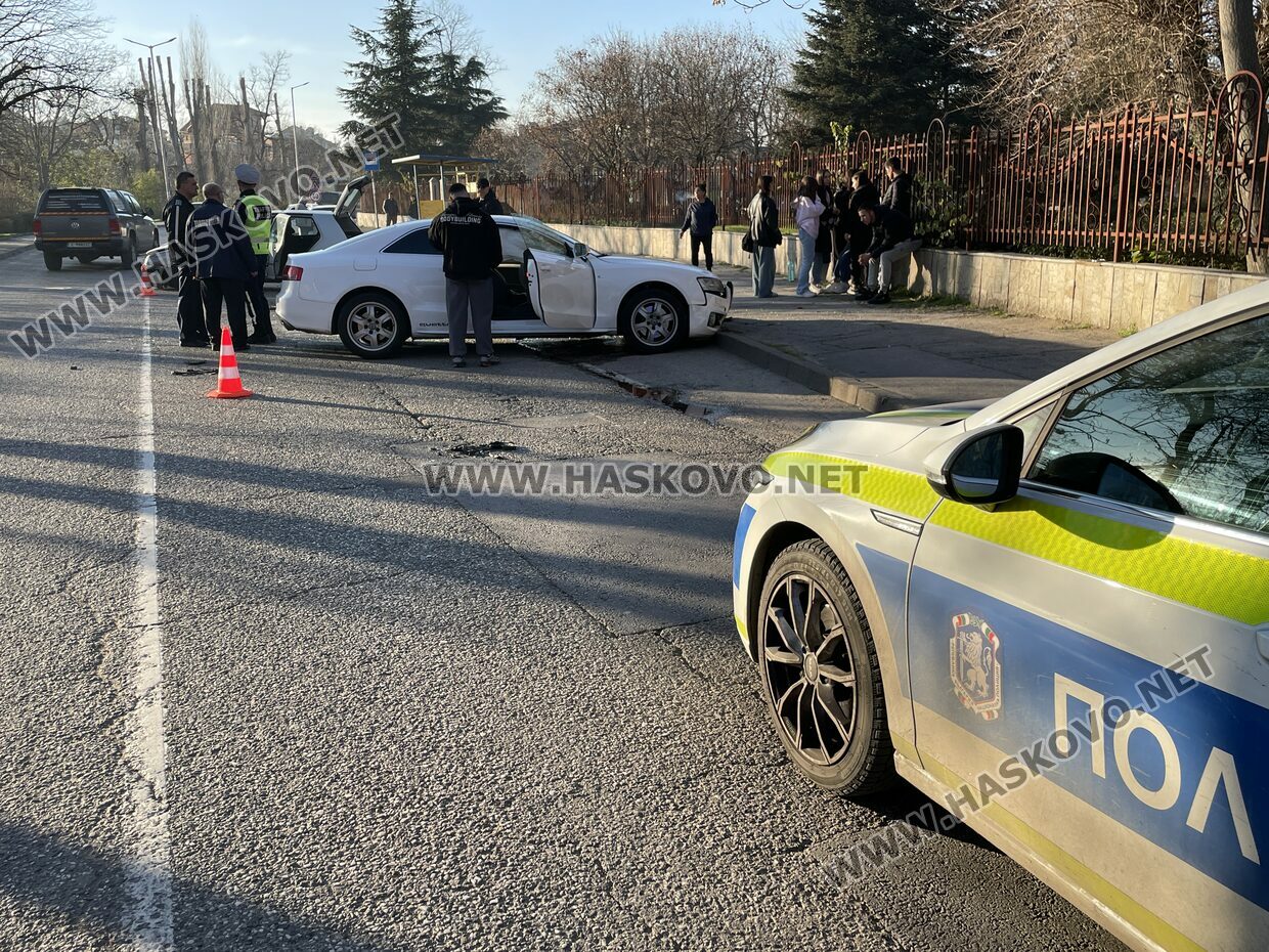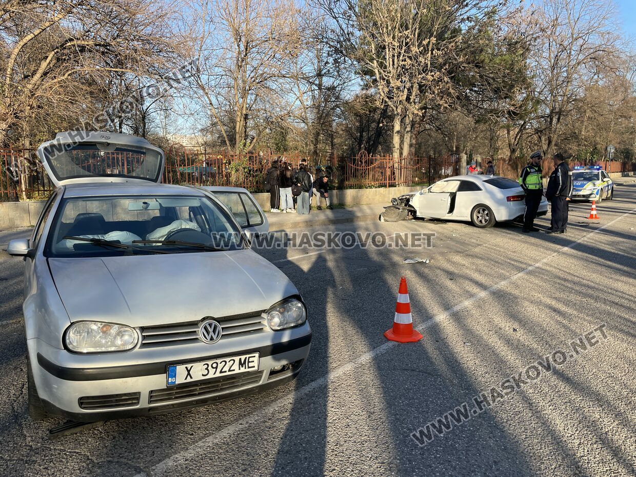Двама млади водачи пострадаха при катастрофа на булевард „България“ в Хасково. Инцидентът стана около 15 часа днес в района на Градската градина.