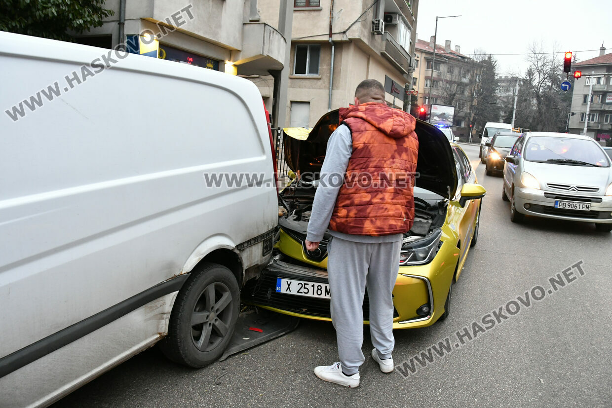 Три коли катастрофираха на булевард „Съединение“ в Хасково. Инцидентът стана около 8 часа днес в участъка между кръстовищата с булевардите „Раковски“ и „България“.