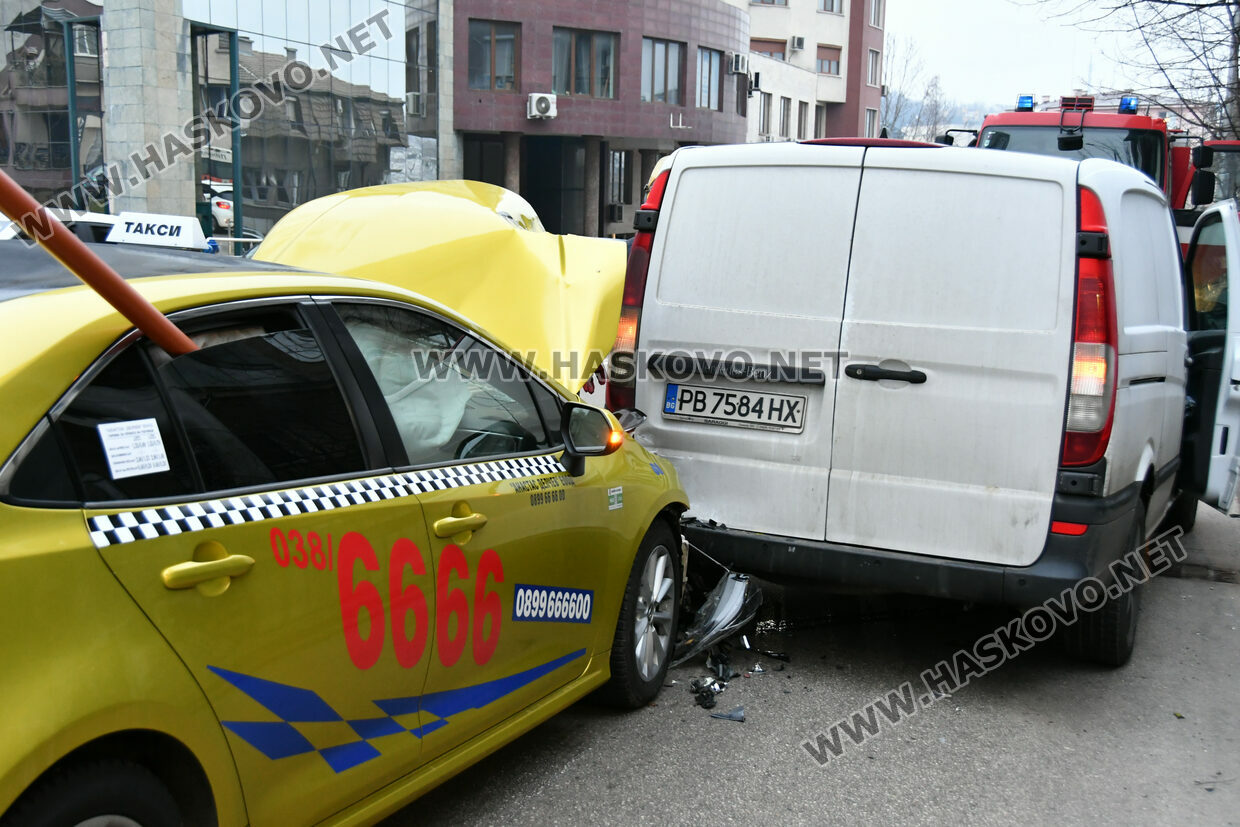 При удара няма пострадали хора. По колите са нанесени материални щети, като най-омачкано е таксито.