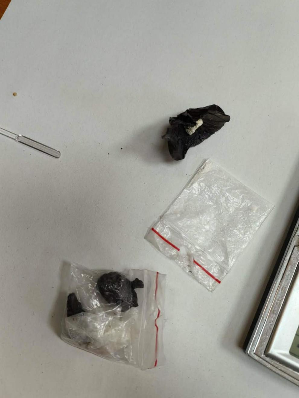 Органите на реда извършили претърсване в условията на неотложност в жилище, ползвано от жената, където са намерени и иззети плик, съдържащ бяло прахообразно вещество, друг със суха зелена листна маса и саморъчно свита цигара, реагирали на амфетамин и канабис.