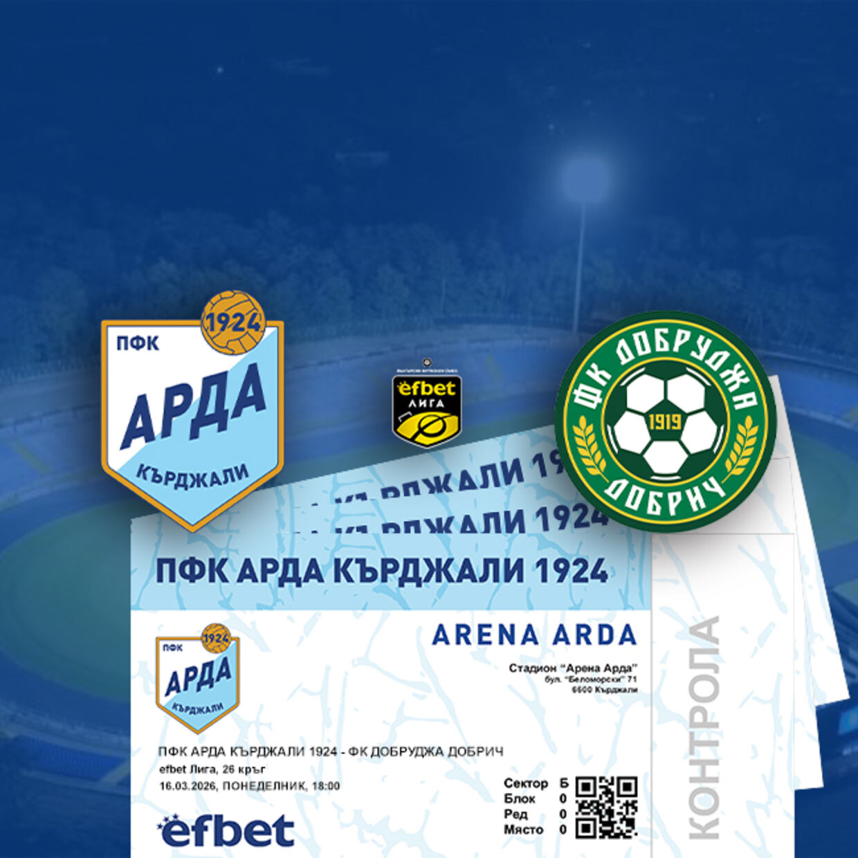за срещата от 26-ти кръг на efbetЛИГА между АРДА и Добруджа. Двубоят е