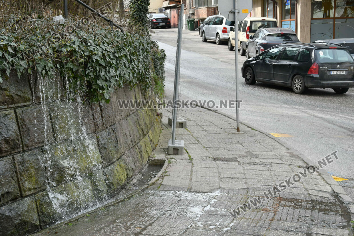 Вода изби от подпорна стена и потече по булевард „Освобождение“ в Хасково, сигнализираха читатели на Haskovo.net.