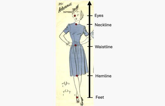 Пример за това как изследователите са измерили характеристики като подгъви, талия и деколтета в архивни кройкиПример за това как изследователите са измерили характеристики като подгъви, талия и деколтета в архивни кройки. Кредит: Emma Zajdela/Daniel Abrams/Commercial Pattern Archive