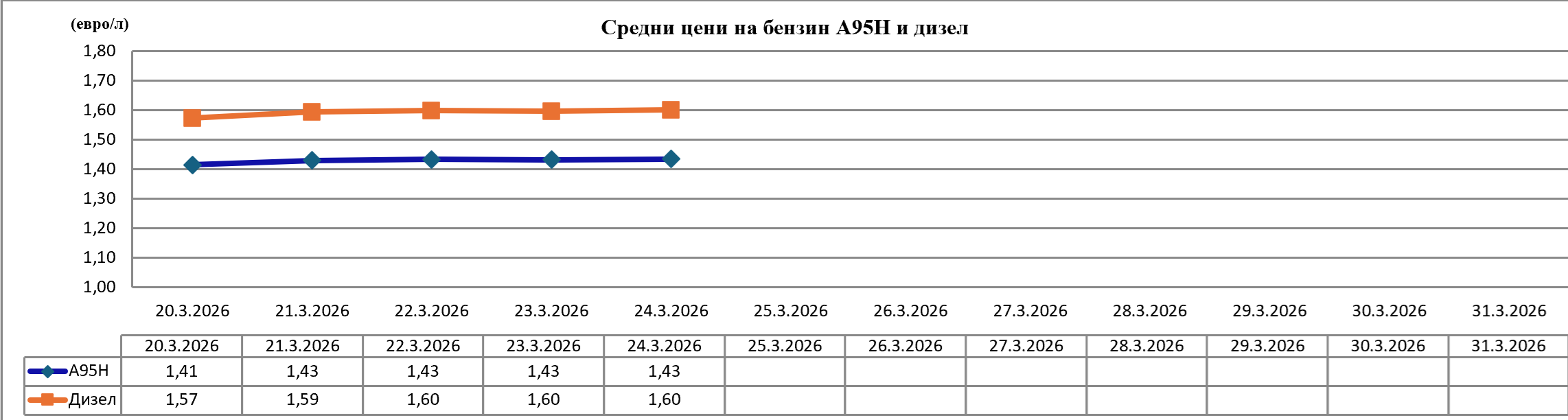 Припомняме, че първата компенсация за увеличените цени на горивата се предоставя за съответния месец, през който средната цена на дребно на бензин А95 или дизелово гориво достигне и надвиши 1,60 евро на литър за период от три последователни дни.