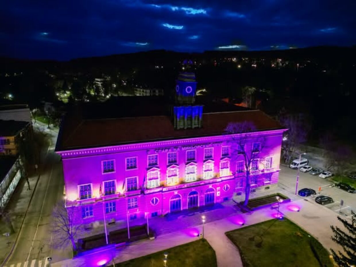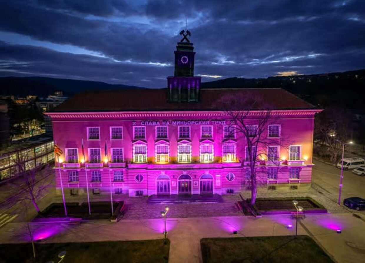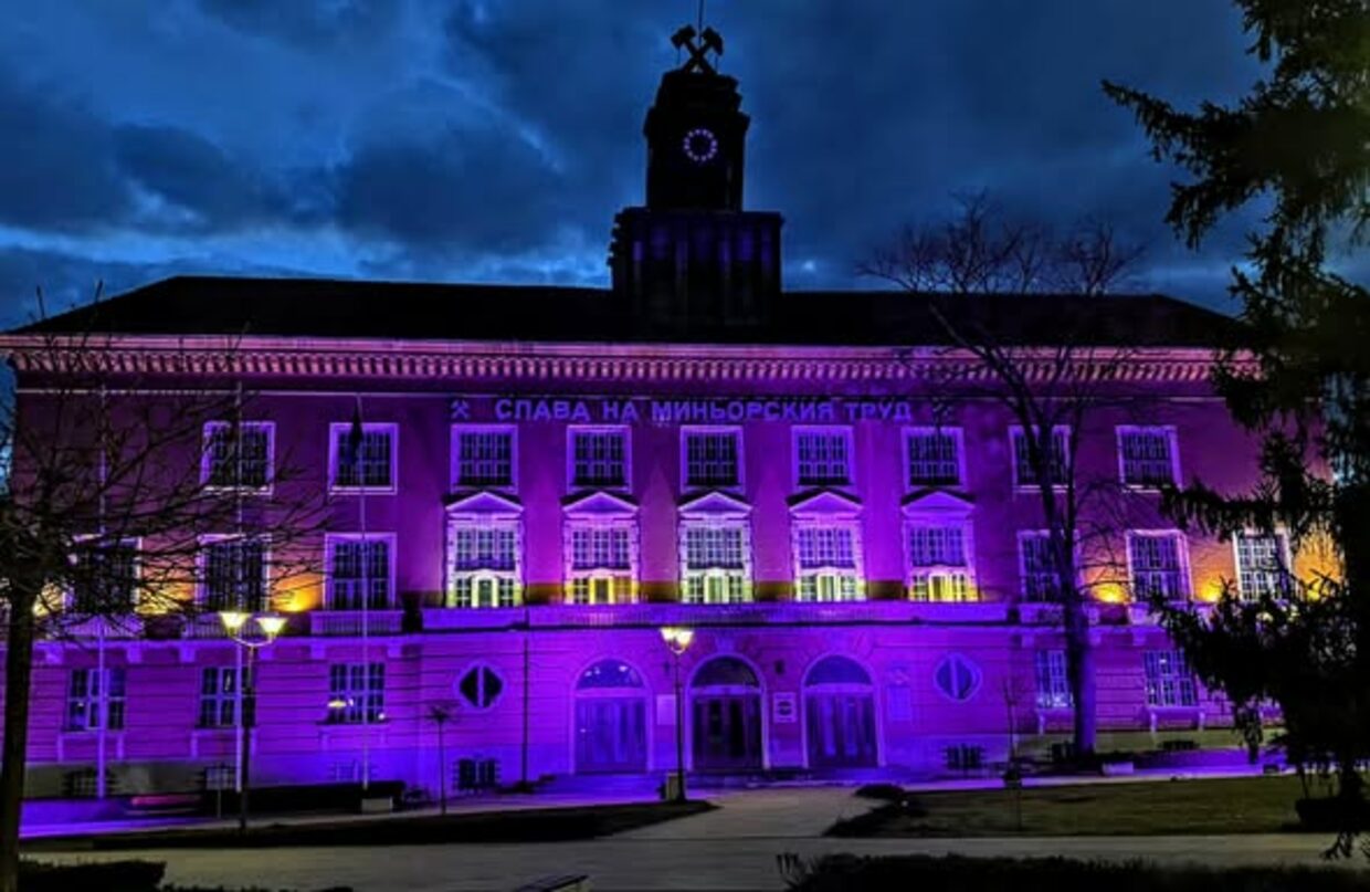 Община Перник се включи в отбелязването на Световния ден за информираност за епилепсията - Лилав ден, като освети сградата на Минната дирекция в лилаво.