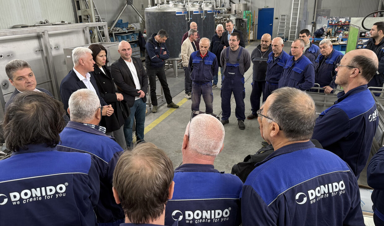 Първото предприятие, което посетиха бе „Донидо“. Един от основните проблеми, с който се сблъсква хасковската фирма, е липсата на квалифицирана работна ръка. През последните години все по-малко млади хора искат да работят професиите шлосер и заварчик. Ако и работещите пенсионери си тръгнат, има голяма вероятност да затворим, споделиха от машиностроителната компания.