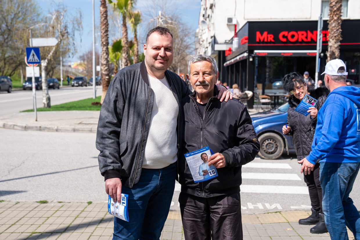 Заедно с други кандидати, общински съветници и доброволци  се срещнаха с граждани на едно от най-оживените места в Димитровград – пред Водната кула, за да чуят директно от първо лице гласа на хората.