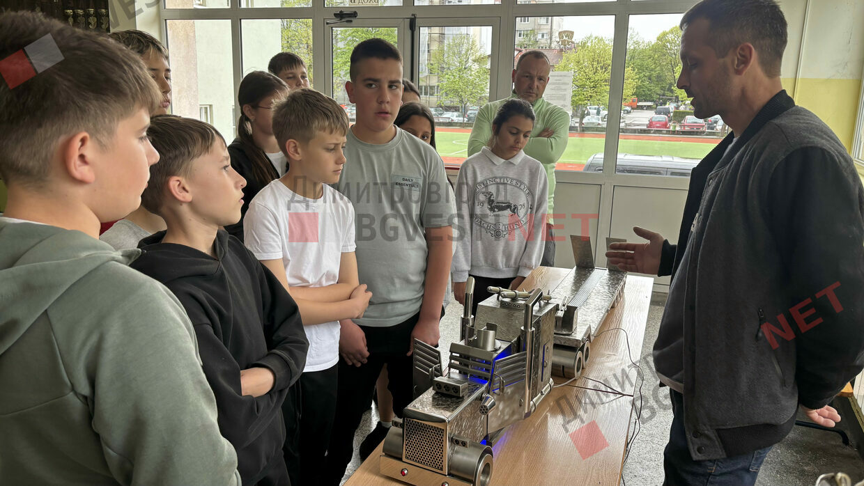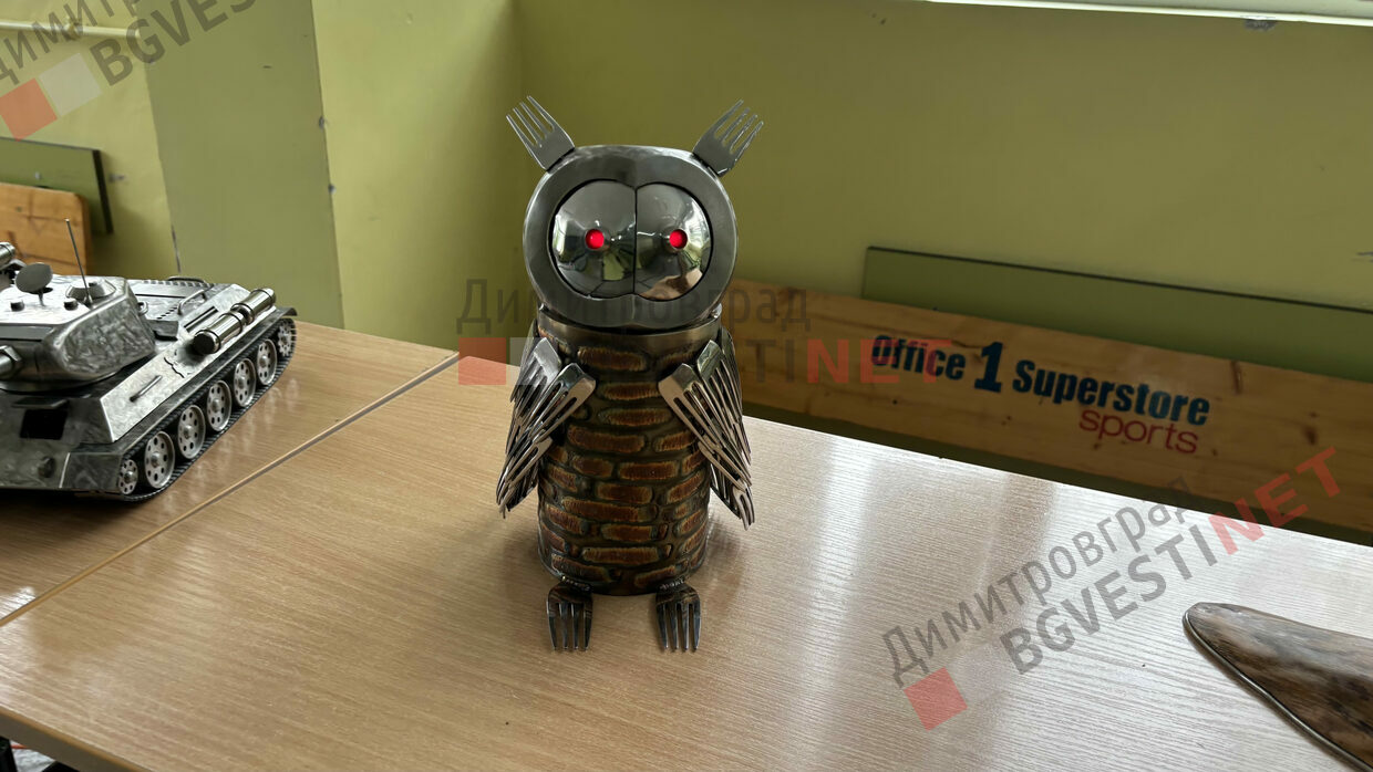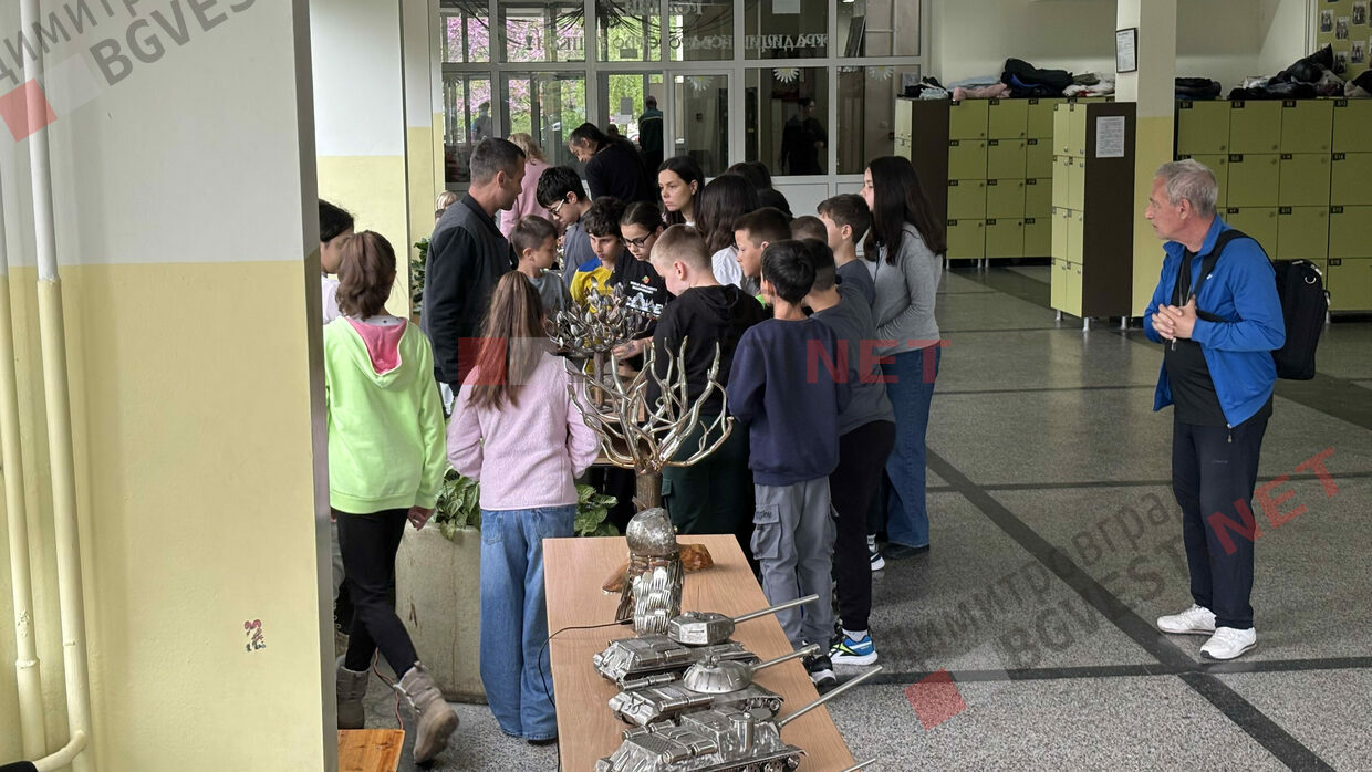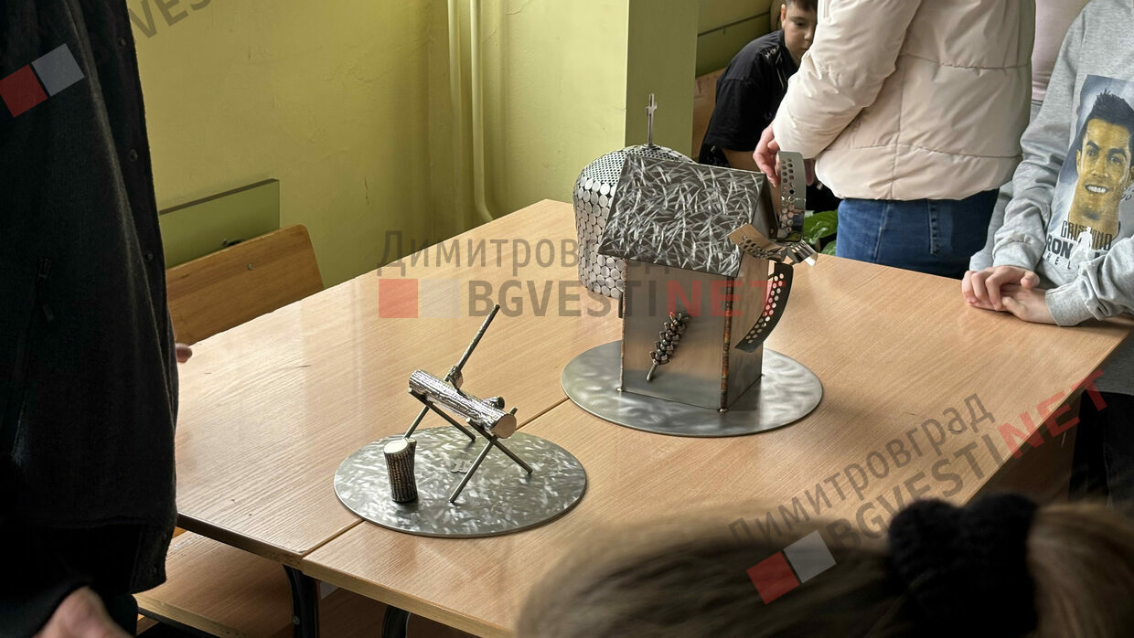 Изложбата пред учениците имаше и важно послание – да покаже, че дори от метални отпадъци може да се роди изкуство. Според него никой не се ражда научен, но когато човек има желание, мотивация, воля и любопитство, може да постигне уникални неща.