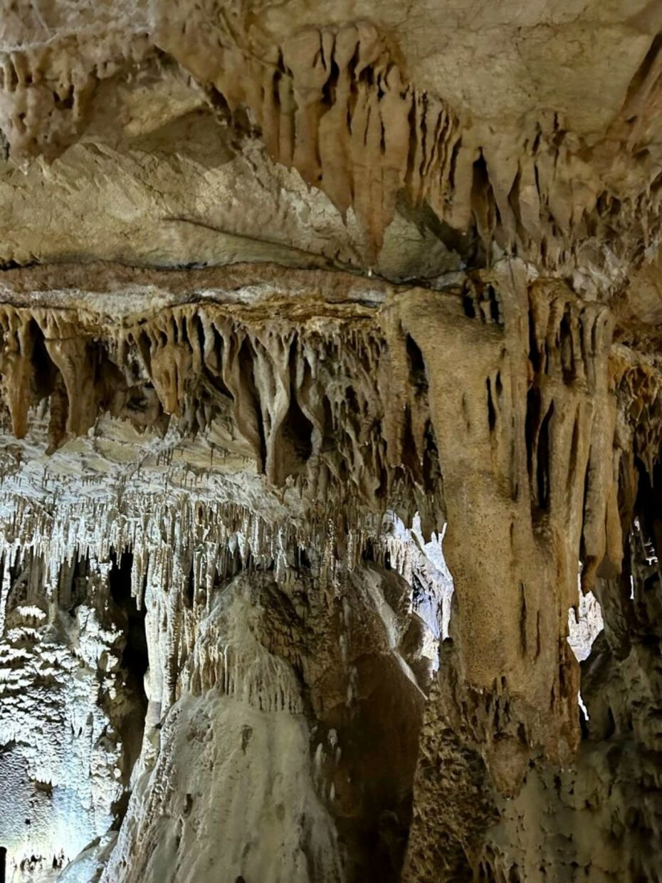 Служителят, който съпровожда туристите, разказва любопитни факти от пещерния живот на обитателите.