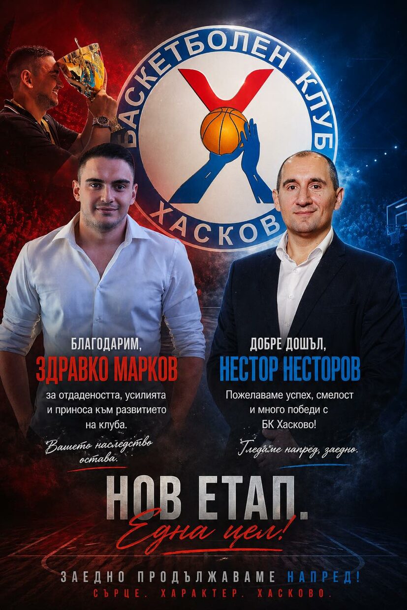 „Благодаря за доверието! През последните години всички решения сме взимали заедно, като екип, и вярвам, че именно този колективен дух ще продължи да бъде в основата на дългосрочния успех на БК Хасково“, коментира след назначението си Нестор Несторов.