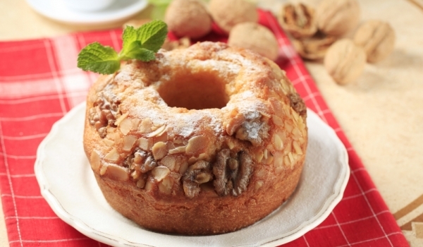 Разбийте маслото и захарта на пяна. Лъжица по лъжица прибавете брашното, след това по един жълтък, ванилия, бакпулвер, смлените орехи и разбитите на сняг белтъци. Не разбърквайте много сместа. Сипете...