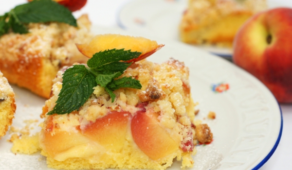 Двеста грама от брашното се пресяват. Маслото се настъргва на едро и се смесва с брашното до образуване на трохи. Нектарините се разрязват на две, отстраняват се костилките и плодовете се режат на сит...