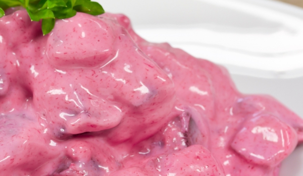 Цвеклото и киселите краставички се слагат в голяма купа. В отделна купа се смесват киселото мляко, винегрета, солта и черния пипер и се залива цвеклото и киселите краставички. Поръсва се с копъра.