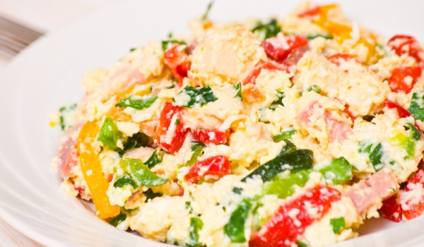 Яйцата и чушките се нарязват на кубчета, лукът се нарязва на ситно. Солта, черният пипер, олиото, кимът и сокът от лимона се смесват. Всичко се смесва с яйцата, чушките и лука и след 10 минути се по...