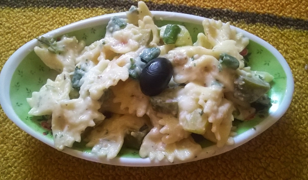 Пригответе италианския дресинг като разбъркате в съд заедно зехтина, оцета от бяло вино, магданоза, лимоновия сок, скълцания чесън, босилека, стритата червена суха чушка и ригана. Нарежете моцарелата...