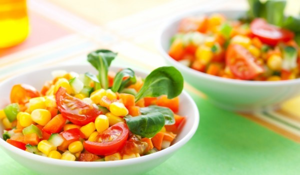 В голяма купа нарежете доматите на парчета, а краставицата, чушките, морковите на ситни кубчета. Добавете царевицата и объркайте. Овкусете със зехтина, оцета, малко от водата на консервата царевица и...