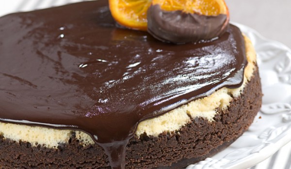 Сложете портокала да се вари цял за около час с вода. Извадете го и го пюрирайте заедно с кората и оставете да изстине. Разтопете за кратко шоколада с маслото и също оставете да се охлади. В дълбока...