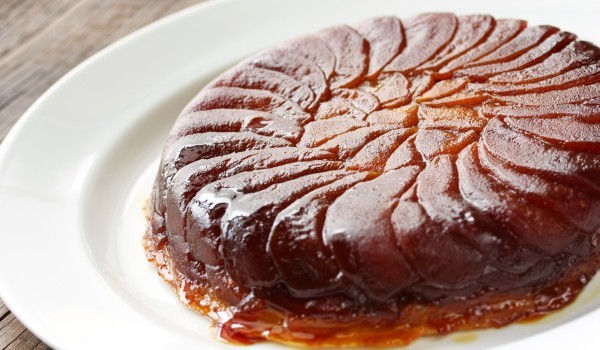 За плодовия слой разтопете 3 с.л. масло и разбъркайте с кафявата захар в съд на котлона, докато захарта се стопи и дръпнете от огъня. Намаслете тава (25 см диаметър) и разпределете карамела равномерно...