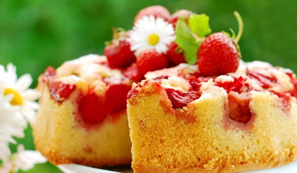 Поръсете ягодите с пудрата захар в купа. Ако са много големи може да ги разполовите. Разбийте маслото със захарта до побеляване и постепенно добавете яйцата при непрекъснато бъркане. Следва да добави...