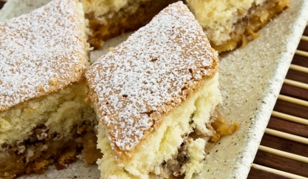 Пригответе голяма правоъгълна намаслена тава, застлана с намазнена хартия за печене. Загрейте фурната на 160 градуса. В купа разбийте яйцата и захарта продължително, след което добавете маслото. Бийт...