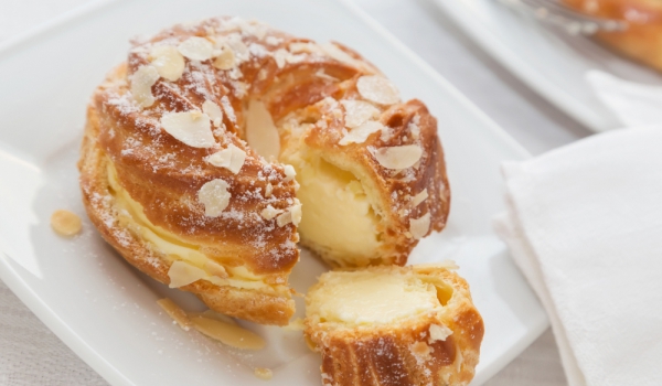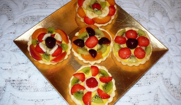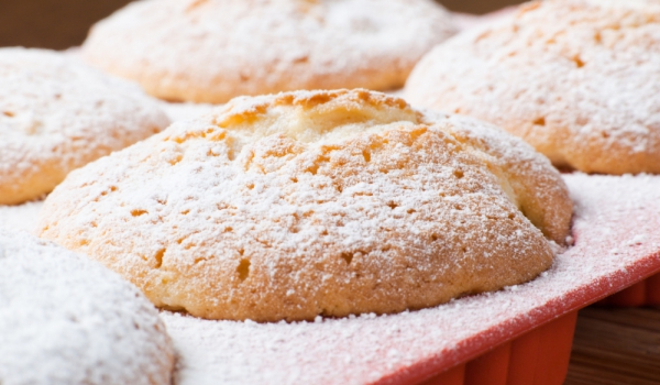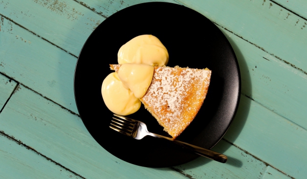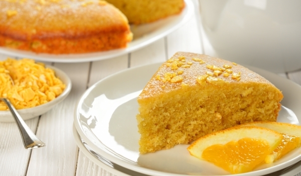 Лимонът и портокалът се изцеждат. Маслото се смесва с половин чаша пудра захар, сока от половин лимон, яйцата, брашното, бакпулвера, бадемите и канелата. Тестото се разбърква добре и се излива в тави...