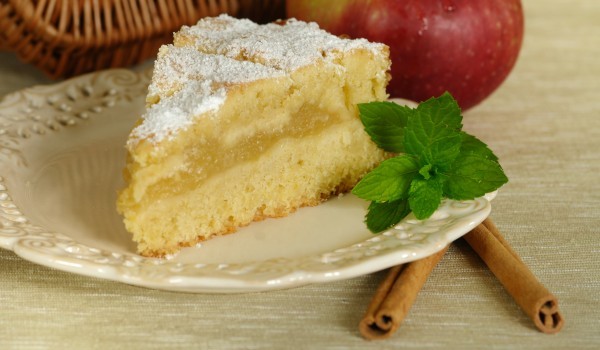 Ябълките се обелват и настъргват. Посипват се със захарта и се оставят да престоят 1 час. След това се прибавят и останалите продукти и сместа се разбърква добре. Пече се във фурна на 180 градуса око...