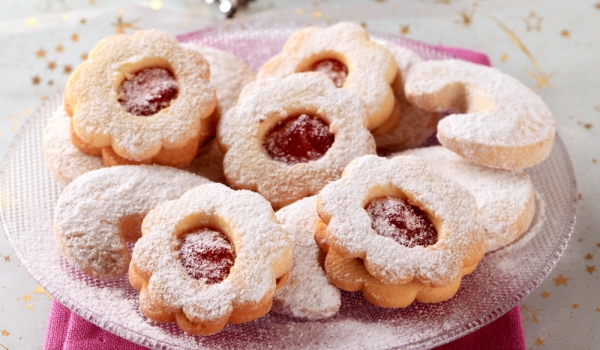 Разбиваме до побеляване омекналото масло с пудрата захар. Прибавяме канелата, брашното с бакпулвера и замесваме бисквитено тесто. Разточваме тестото на кора с дебелина 5 мм. Изрязваме фигурки с форми...
