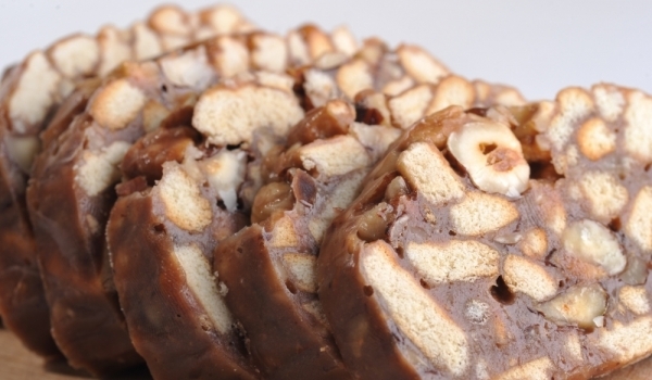 Смиламе бисквитите и ги смесваме с размекнатото краве масло, нарязания на ситни кубчета локум, ситно натрошения шоколад, яйцето, канелата и ореховите ядки. Разбъркваме до получаването на гладка смес и...