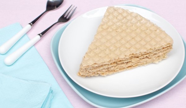 От яйцата, захарта, маслото, какаото и брашното се приготвя тесто и се изпича на тънки блатове. Шоколадът се стопява на водна баня и след охлаждане се смесва с разбитата със захарта сметана. Добавя с...