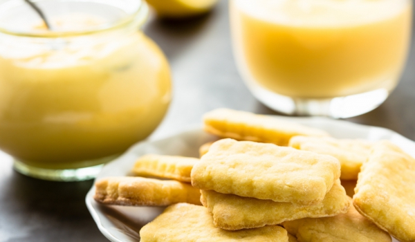 Разбърквате захарта с киселото мляко и към тях прибавяте олиото и настърганата лимонова кора. Сипвате брашното заедно със содата. Омесвате умерено меко тесто. От тестото оформяте топчета, които овалв...