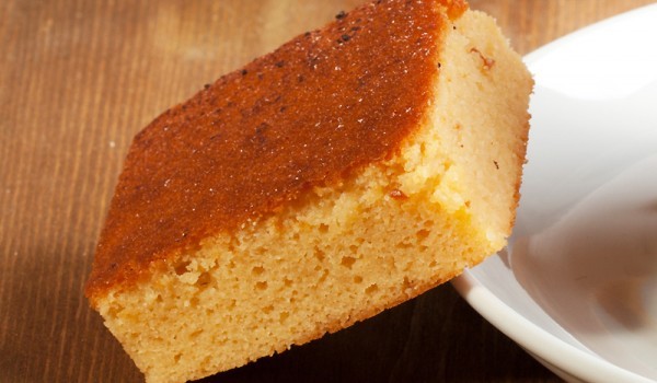 Разбийте яйцата със захарта. Прибавете олиото и лимоновата кора. При непрекъснато бъркане сипете брашното. Изсипете сместа в покрита с намаслена хартия за печене тава. Печете в предварително загрята...