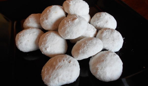 Белтъците се разбиват на пяна със захарта. Добавят се една трета от орехите, пудрата захар, ванилията и всичко се смесва. Тестото се шприцова върху тава с хартия за печене, и се пече до готовност на...