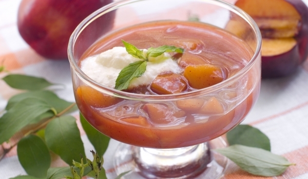 Няколко ягоди и кайсии се оставят за украса. Желатинът се накисва в охладена преварена вода и се оставя да набъбне. Водата се смесва със захарта, вари се на слаб огън до разтваряне на кристалите, охла...