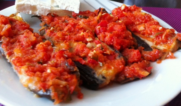 Патладжаните се осоляват и се оставят да се отцеждат в гевгир за около 1 час. След това се пържат в 1/2 ч.ч. (125 мл) от зехтина около 10 мин. Изцеждат се добре от мазнината и се оставят встрани. Цел...