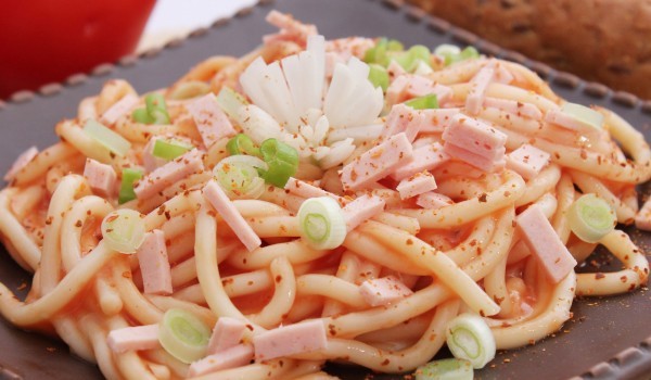 Сварете макароните според указанията на опаковката. Докато макароните се варят, смесете останалите продукти (с изключение на кашкавала) в голяма тенджера и варете докато лука се свари. След като мак...