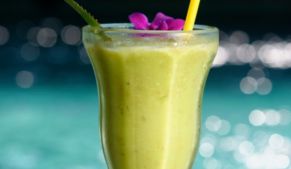 Нарежете портокала, банана и авокадото на парчета. Сложете ги в пасатора. Добавете магданоза, сока на половин лимон и 1 ч.ч. вода. Пасирайте, докато се получи гладка смес.