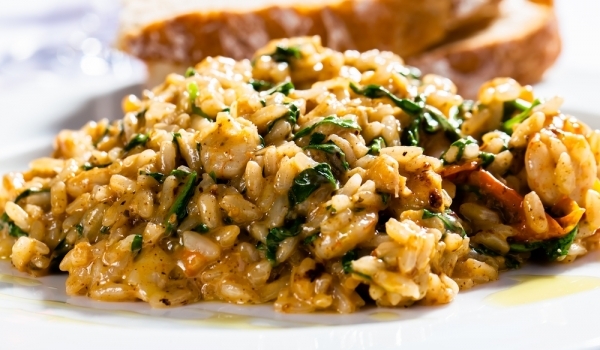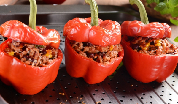 Кафявият ориз се накисва за 4-5 часа, а булгурът - за два. Може просто да се добави към ориза. 1 литър вода се кипва и в нея се накисват сушените чушки за 30 минути или докато трае обработката на зеле...