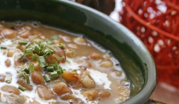 Сварете предварително боба, без да го преварявате. Сложете скълцания праз да се запържи в сгорещено олио заедно с настъргания морков. След като омекнат, добавете ситно нарязаните чушки. Долейте 300...