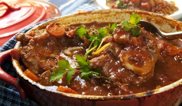 Почистете пържолите, начукайте ги леко, натрийте ги със сол и за кратко ги запържете в олиото. Извадете ги от мазнината и в нея запържете лука и чесъна. Върнете пържолите обратно, залейте ги с виното...