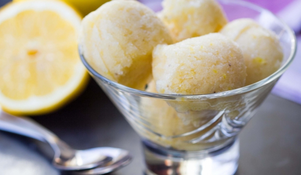 Чашите или купичките за сорбето се охлаждат в хладилника. Кората на лимоните се настъргва. Лимоните се изцеждат и в сока се слага желатинът. Щом набъбне, се разтваря на водна баня на бавен огън. Доба...