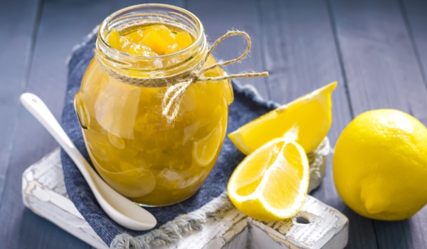Измийте и нарежете лимоните. Поръсете ги със сол. Объркайте останалите подправки и завържете в парче марля. Сипете оцета в тенджера, добавете 2 ч.ч. вода, прибавете захарта и пуснете торбичката с под...