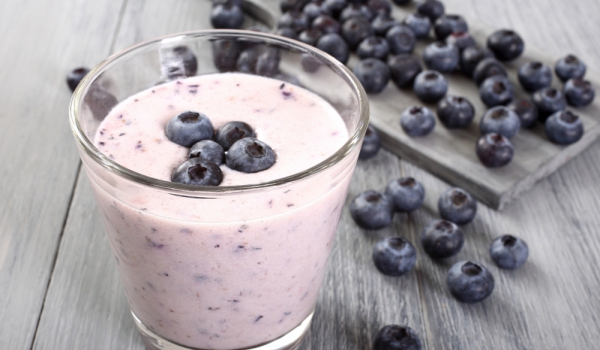 Сипете ябълковия сок в блендер, добавете киселото мляко/йогурта вътре и разбийте до хомогенна смес. Добавете замразения банан и половината замразени боровинки. Пуснете отново пасатора и разбийте, след...