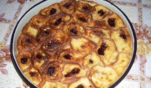 Кроасаните се нарязват на колелца и се нареждат в тава. Яйцата, млякото и захарта се разбиват като за крем - карамел. Кроасаните се заливат със сместа и се пекат около 20 минути, на умерена фурна. Д...