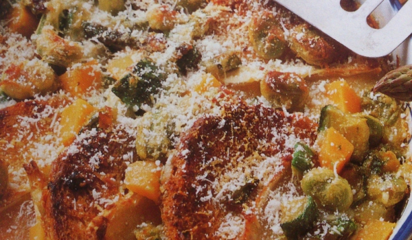 Фурната се загрява предварително до 180 градуса. Лукът се запържва, докато омекне. Добавят се тиквичките, морковите, аспержите, баклата за около 5 мин. и се осолява. Две форми за печене се мажат със...