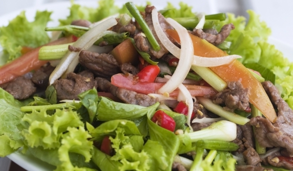 Приготвя се дресинг, като беконът се запържва до златисто. Вади се от тигана и се запържва брашното, като постепенно се добавят 100 милилитра вода, оцетът и захарта. След като сместа се сгъсти, се до...